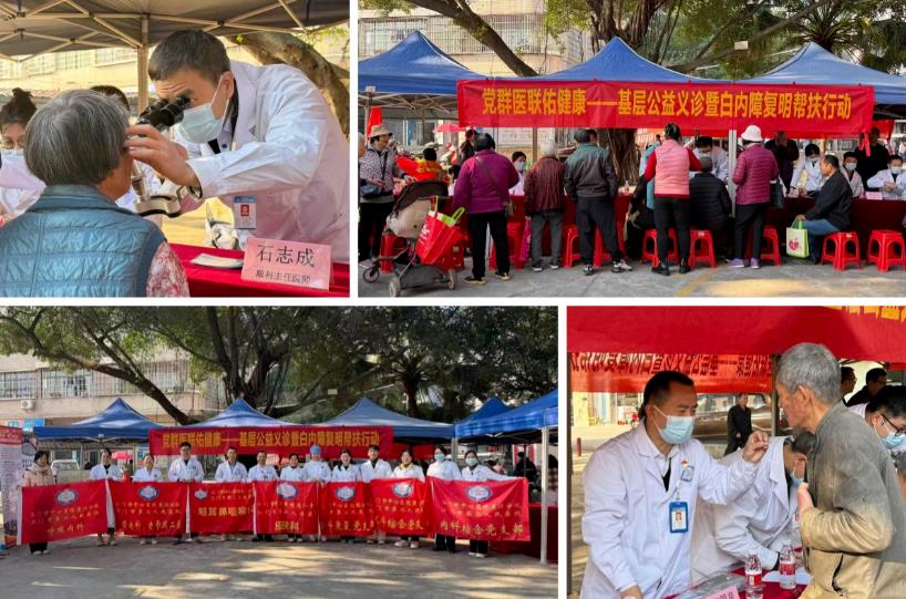 为切实把优质医疗资源送到群众“家门口”,解决基层群众尤其是老年群体“看病远、看病难”的问题,1月10日,我院联合蓬江区潮连医院一同前往潮连街道卢边市场开展“党群医联佑健康——基层公益义诊暨白内障复明帮扶行动”主题义诊活动