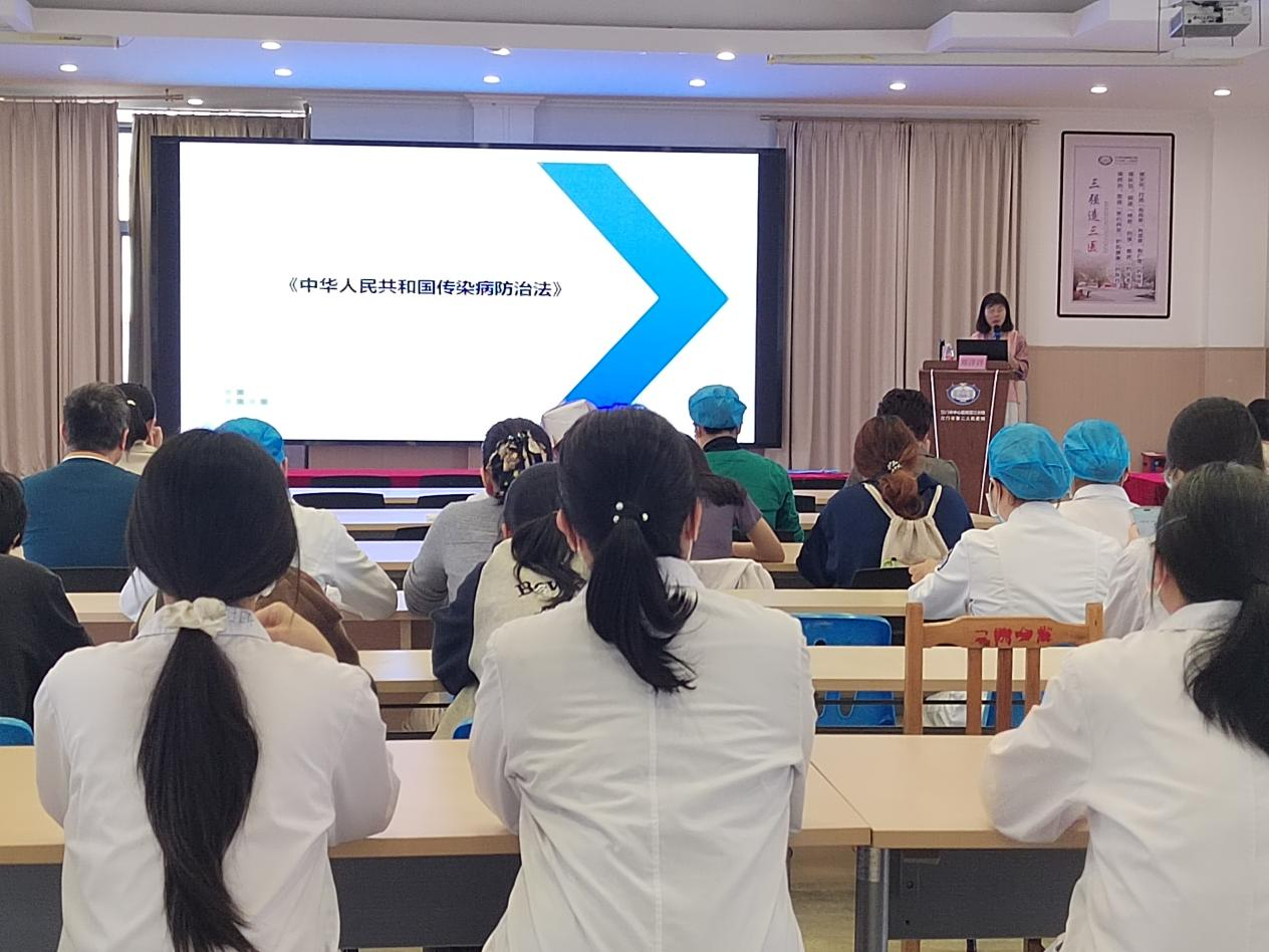 为进一步提升医务人员对新修订《中华人民共和国传染病防治法》的认识和理解,增强依法防控传染病的意识和能力,切实保障人民群众生命健康安全,12月19日下午,我院特邀请广东法匠律师事务所郑洋洋律师开展《中华人民共和国传染病防治法》专题培训。