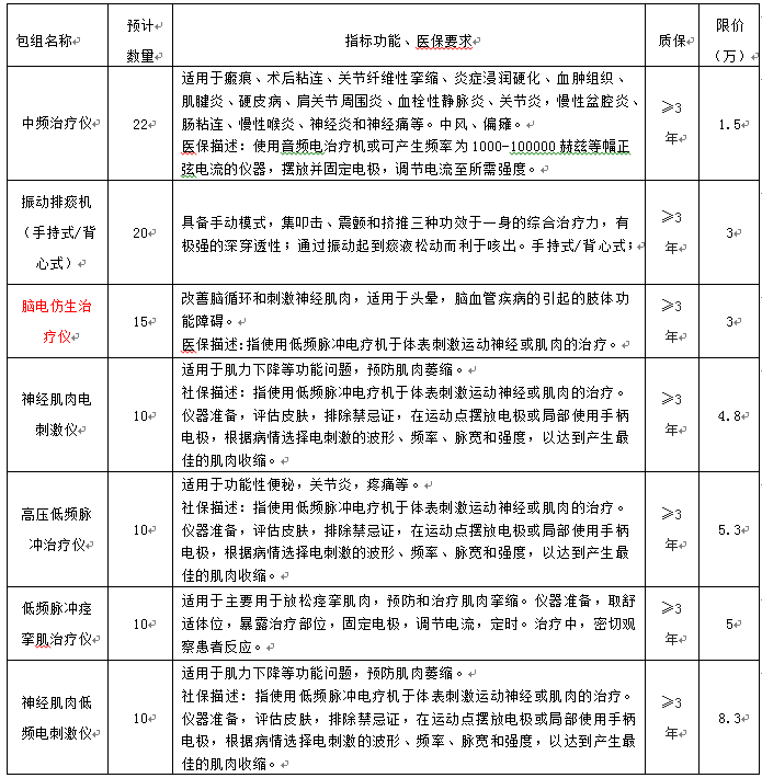 本着“公开、公正、公平、择优”的原则,统筹规范理疗仪器及配套耗材的采购,拟组织以下医疗用理疗仪器进行采购,兹邀请符合资格条件的供应商报名: