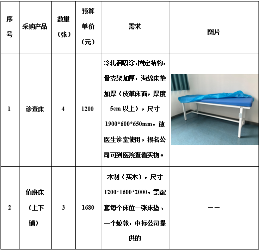 一、项目名称:江门市第二人民医院诊查床、值班床(上下铺)采购