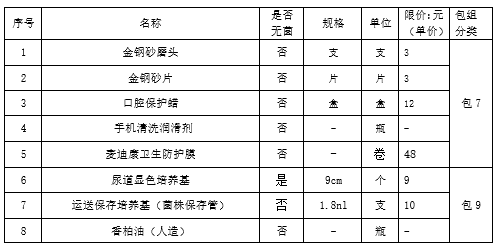 (不作医疗器械管理)耗材项目,包组7和包组9在医院官网第一次发布遴选公告后,有效期内未收到公司报名资料,现重新挂网遴选公告,请报名公司按包组报名,报名公司需提供耗材样品,耗材清单如下: