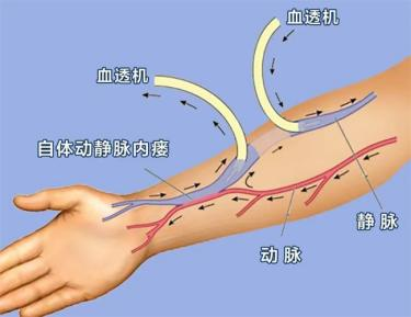 自体动静脉内瘘(AVF):是通过手术将患者自身的一根动脉和邻近的静脉吻合,使静脉动脉化,管壁增厚、血流量增大达到穿刺透析的目的。这是所有通路类型中首选且最理想、最持久的通路。