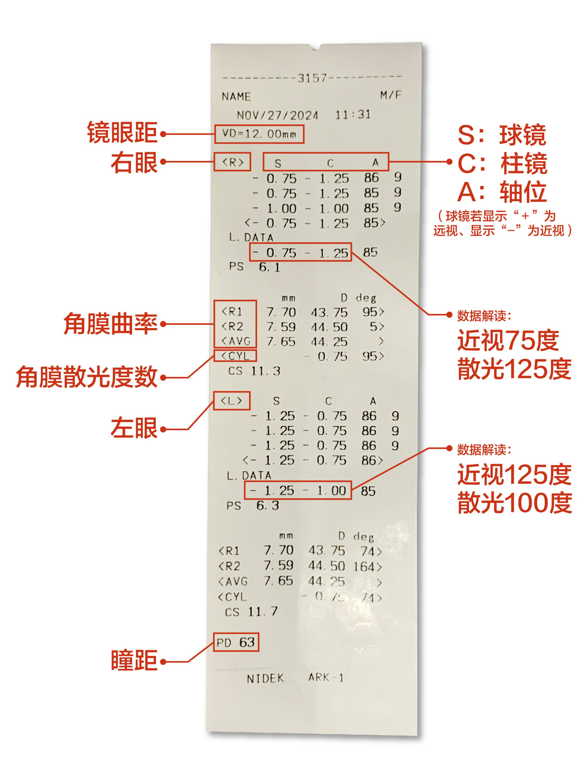 很多就诊者在眼科检查时,都会做一个项目一一电脑验光检查。当拿到结果时,看着电脑验光单上那些密密麻麻的数字和字母,完全看不明白,其实只要稍微了解一下,就能轻松读懂。今天我们就来简单解析一下验光单上的关键信息,让你对自己的眼睛情况了如指掌!
