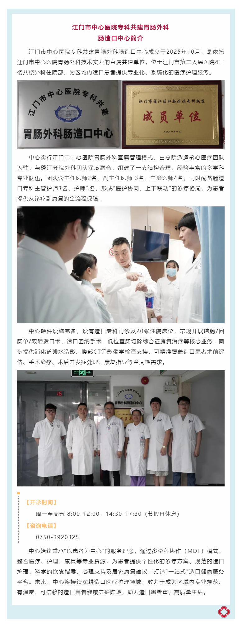 若您或家人受造口旁疝困扰,欢迎前往我院胃肠外科咨询就诊,我们将提供专业、个性化的诊疗护理方案,守护您的术后健康!