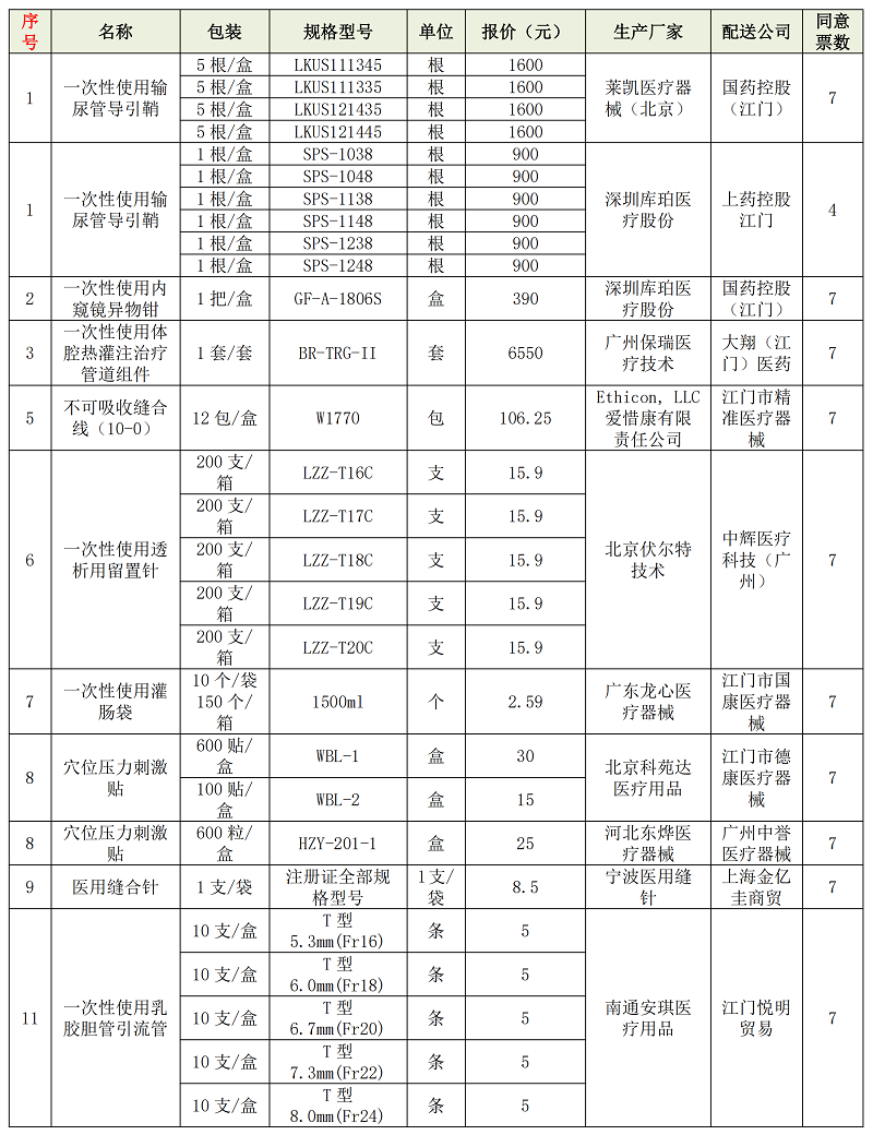 项目编号医用耗材:HC20250529 最终拟确定得票数过半的公司为候选公司(选送品种),遴选结果如下: