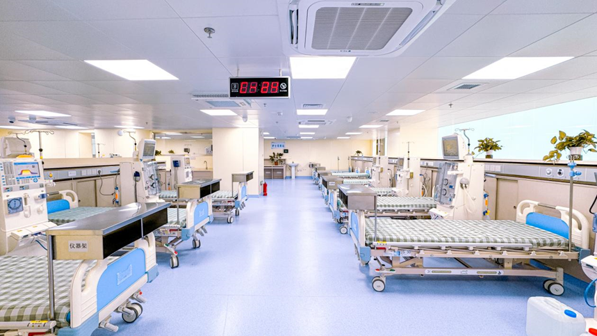 血液净化中心现址位于综合楼1楼,总建筑面积约971平方米,设计透析床位36张,实际开放透析床位28张,血液透析治疗区分为普通透析区、过渡区、乙肝透析区、呼吸道隔离区。普通透析区24张透析床位,过渡区2张床位,乙肝透析区2张透析床位,呼吸道隔离区暂无透析床位。配套设施齐全,透析环境整洁明亮,旨在提升患者的就医舒适度。