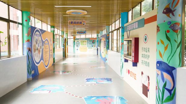 眼健康科普馆位于医院门诊二楼的眼健康科普馆,占地320余平方米,设有眼睛奥妙、近视防控、互动游戏等六大功能区,是集科普、体验、趣味于一体的宝藏打卡地。