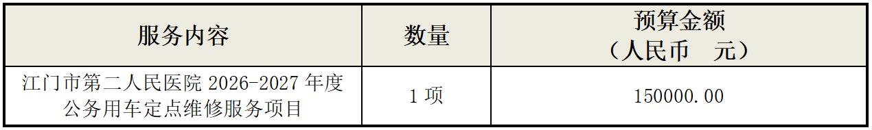 (一)项目名称:江门市第二人民医院(江门市中心医院蓬江分院)2026-2027年公务用车定点维修项目