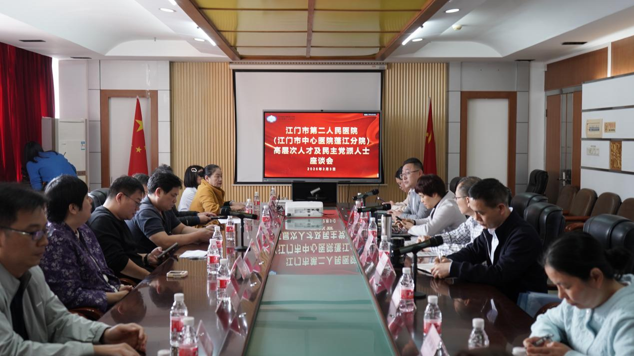 为深入贯彻党管人才原则,凝聚统战合力,以党建引领医院高质量发展,2月3日,江门市第二人民医院(江门市中心医院蓬江分院)在门诊楼大会议室召开2026年度高层次人才及民主党派人士座谈会。医院党政领导班子与各临床科室骨干、高层次人才及民主党派人士代表齐聚一堂,共话发展、共献良策、共绘蓝图。会议由我院党委委员、副院长闫志兵主持。