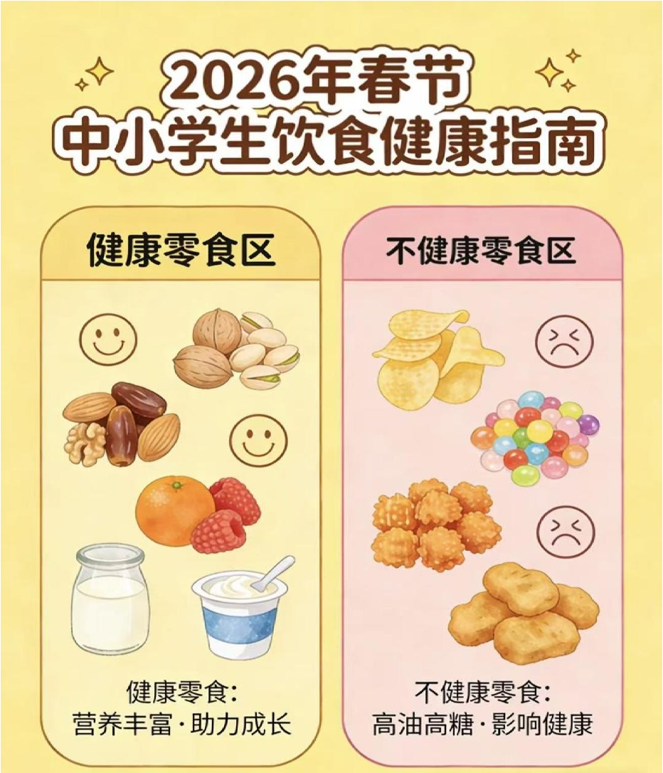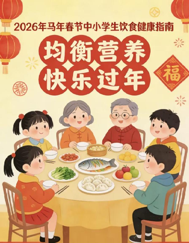 寒假碰上春节,家家户户美食多,孩子们容易吃多、吃乱,甚至暴饮暴食、零食不离手,不仅影响健康,还可能耽误长身体。请家长收好这份简单实用的饮食指南,让孩子在假期里吃得健康、长得壮实!