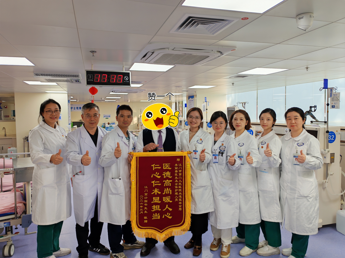 3月12日,正值第二十一个世界肾脏日,血液净化中心医护人员收到患者赠送的一面写着“医德高尚暖人心,仁心仁术显担当”的锦旗,沉甸甸的十四个字,不仅表达了患者对血液净化中心全体医护人员的深深感激,更是对科室医疗技术和人文关怀的高度肯定。锦旗既是荣誉,更是责任,血液净化中心将以此为动力,继续精益求精,守护好患者的身心健康。