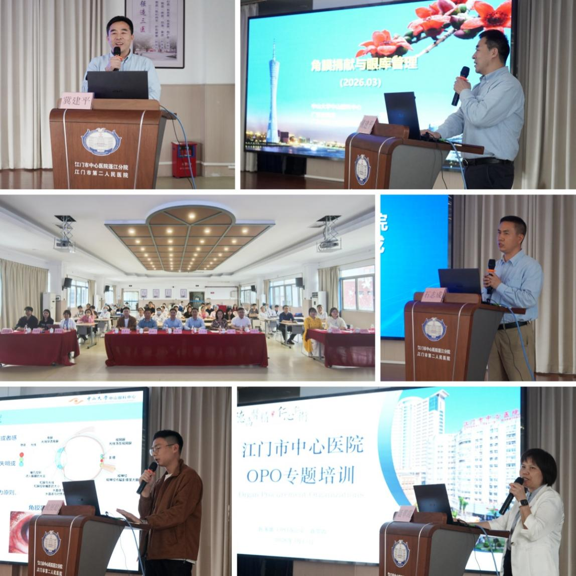 为深化医联体协作交流,夯实器官捐献工作基础,规范角膜捐献移植全流程管理,3月17日,由江门市中心医院主办,我院承办的角膜捐献、角膜移植与OPO专题培训在我院门诊楼五楼大礼堂举办。本次培训特邀广东省眼库主任冀建平、广东省眼库医师欧展聪及江门市中心医院医务部OPO办负责人聂翠霞进行授课,聚焦角膜捐献全流程规范、角膜移植诊疗要点、OPO工作权责与政策伦理等核心内容开展专题讲解。此次培训有效普及了角膜及器官捐献相关专业知识,明晰了工作流程与伦理规范,强化了医务人员生命公益理念与专业素养,为规范推进器官捐献相关工作、提升医疗公益服务水平筑牢了基础。