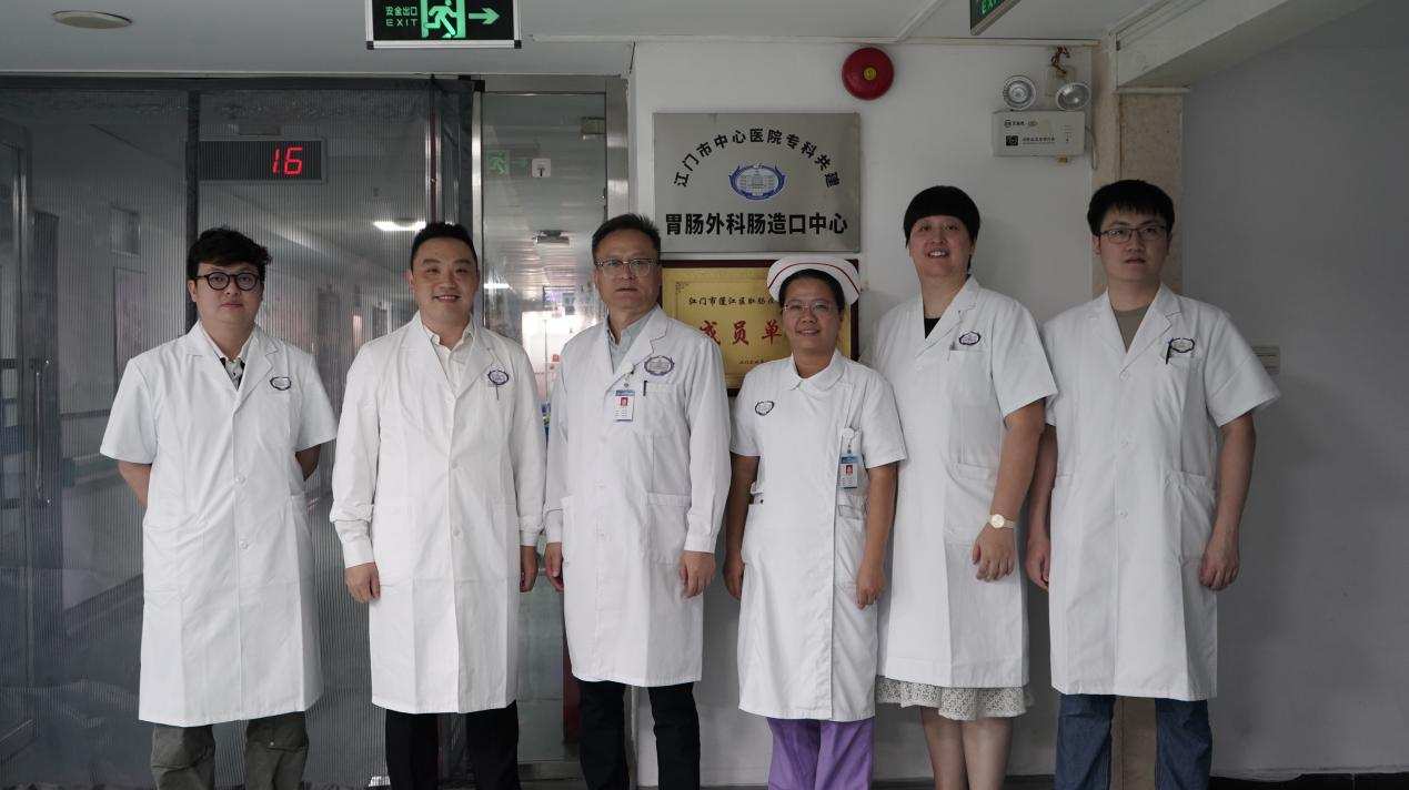 中心实行江门市中心医院胃肠外科直属管理模式,由总院派遣核心医疗团队入驻,与蓬江分院外科团队深度融合,组建了一支结构合理、经验丰富的多学科专业队伍。团队含主任医师2名、副主任医师3名、主治医师4名,同时配备肠造口专科主管护师3名、护师3名,形成 “医护协同、上下联动” 的诊疗格局,为患者提供从诊疗到康复的全流程保障。