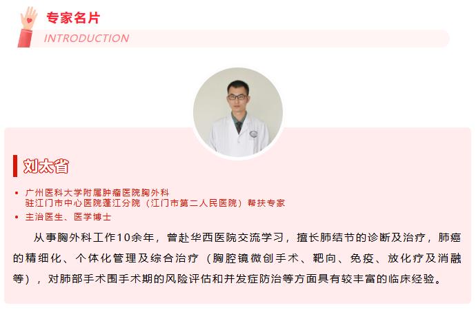 为了让每一个肺结节患者都能得到规范的治疗,解开心头之结。我院特借助与广州医科大学附属肿瘤医院搭建专科联盟的契机,开设肺结节多学科诊疗门诊(简称肺结节MDT门诊),由影像科、呼吸科、胸外科、病理科、康复科等多科室专家组成,可对肺结节进行综合评估。