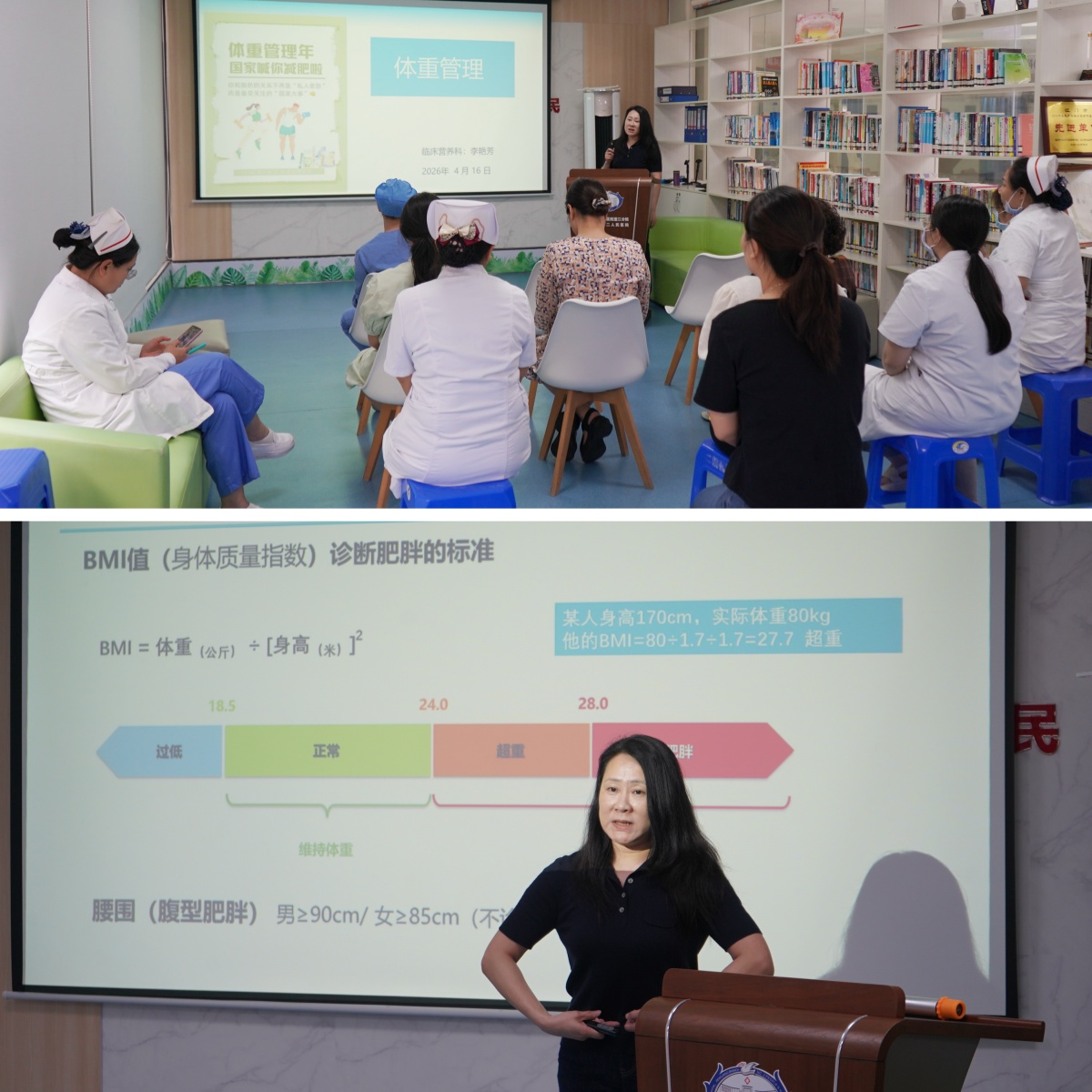为推进营养科联合工会、妇委、团委共同发起的体重管理体验活动落地,助力职工快速建立科学体重管理意识、掌握实用技能,4月16日下午,我院举办活动专题交流会,吸引众多职工积极参与,营养科李艳芳担任主讲。会上,李艳芳主任系统讲解了科学膳食搭配、运动强度把控、作息规律调节等关键知识点,并通过现场互动问答等形式,让抽象知识变得可操作、易掌握。参会职工纷纷表示,此次交流会内容实用、贴近需求,为后续参与体验活动、养成健康生活方式奠定了坚实基础。